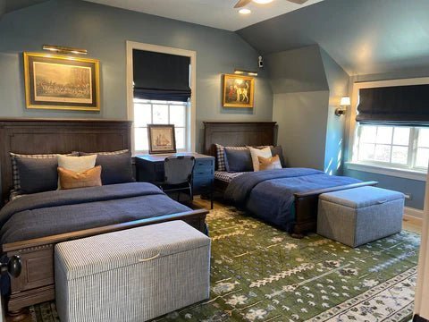 Our rugs are handwoven with 88% certified New Zealand wool and 12% natural cotton yarns. Wool fibers are enriched with lanolin, a naturally occurring wool wax that’s secreted by wool-bearing animals. This wax contributes to its soft touch, and gives it a hydrophobic nature—in other words, a natural moisture-repellency that causes moisture to bead on the rug’s surface rather than being absorbed right away. The dyes used are azo-free, or low-impact, and free of toxic and carcinogenic compounds. Unlike other machine washable and stain-resistant rugs on the market, ours are free of flame retardant and stain-repellent chemicals.